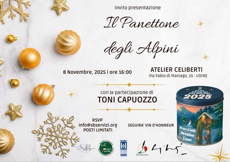 Sabato 8 novembre si è tenuta, presso lo Studio Giorgio Celiberti di Udine, la presentazione del “Panettone degli Alpini”, un’iniziativa benefica promossa dal Gruppo ANA 8° Reggimento Alpini, l’unico gruppo dell’Associazione Nazionale Alpini composto da Alpini in servizio nella Brigata Alpina Julia.